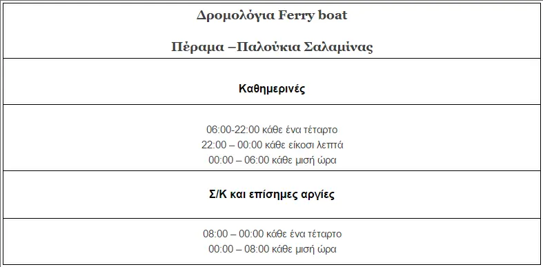 Συγκοινωνία - Perama κατάλογος Περάματος