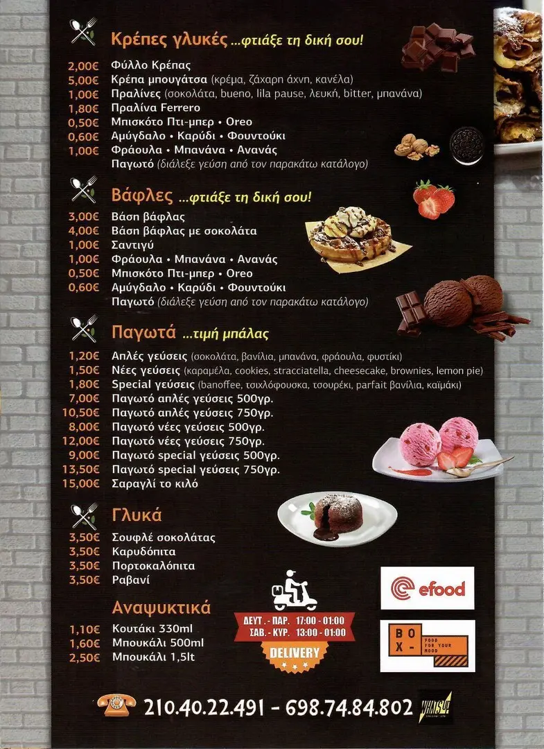 Σάββατο - Κυριακή : 13:00 - 01:00