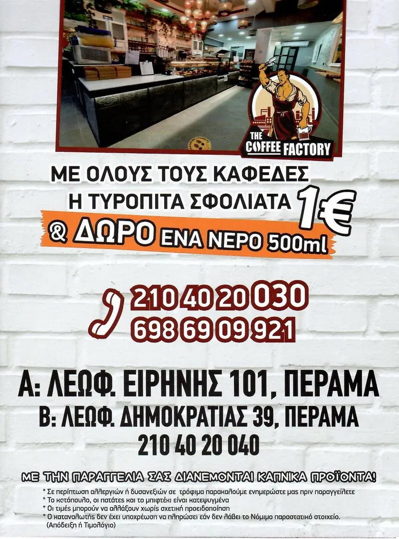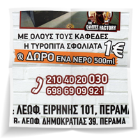 Με όλους τους καφέδες σας, η τυρόπιτα σφολιάτα 1.00 € & ΔΩΡΟ ένα νερο 500ml